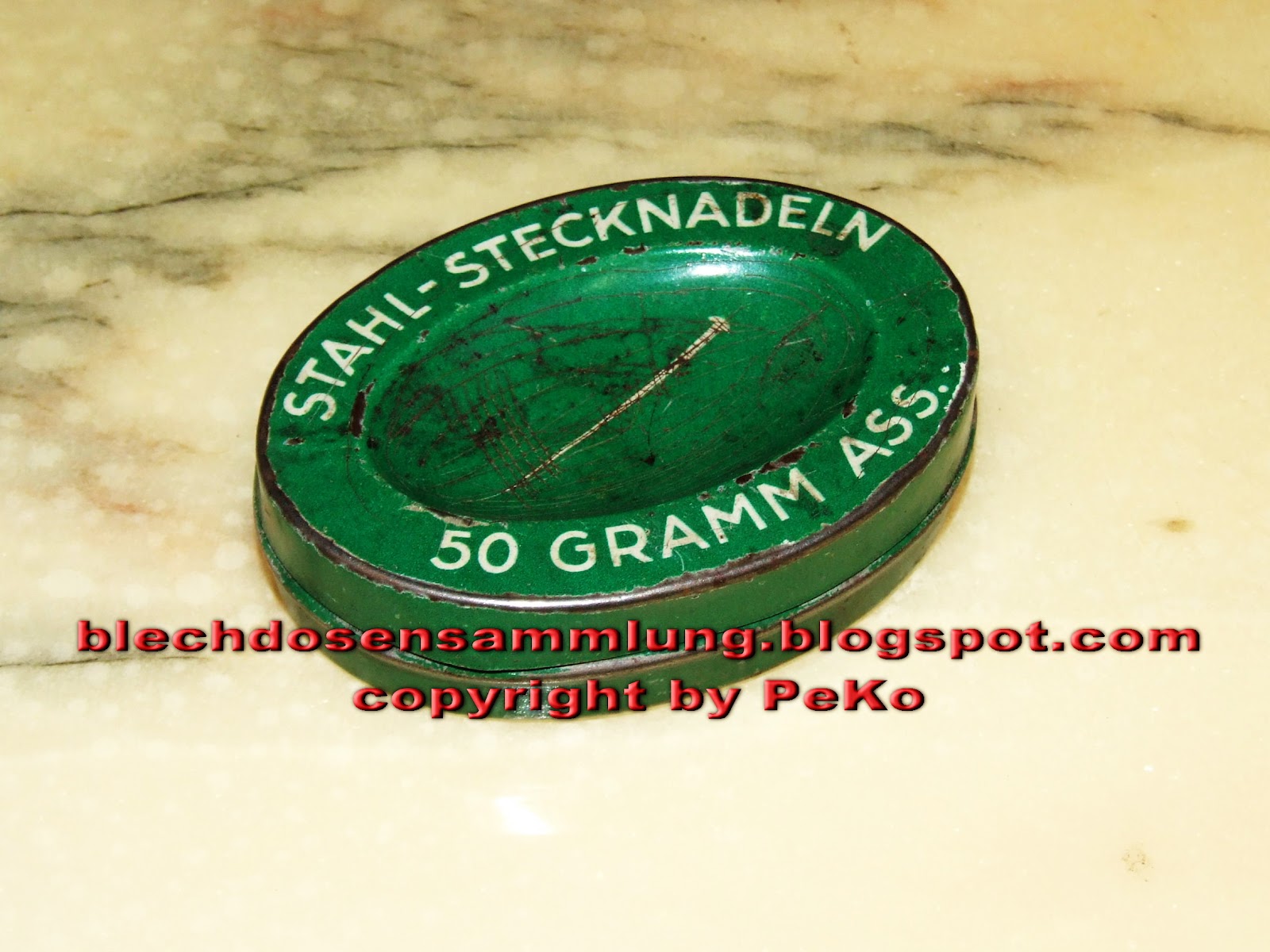Und da sich auf keiner dieser Dosen eine Firmenbezeichnung finden lässt, ist es sehr schwer, diese Dosen zuzuordnen oder auch herauszufinden, wieviele verschiedene Designs zu dem jeweiligen Hersteller im Handel waren und somit noch in einer Sammlung fehlen.preiswerte Nadeln angeboten wurden.
